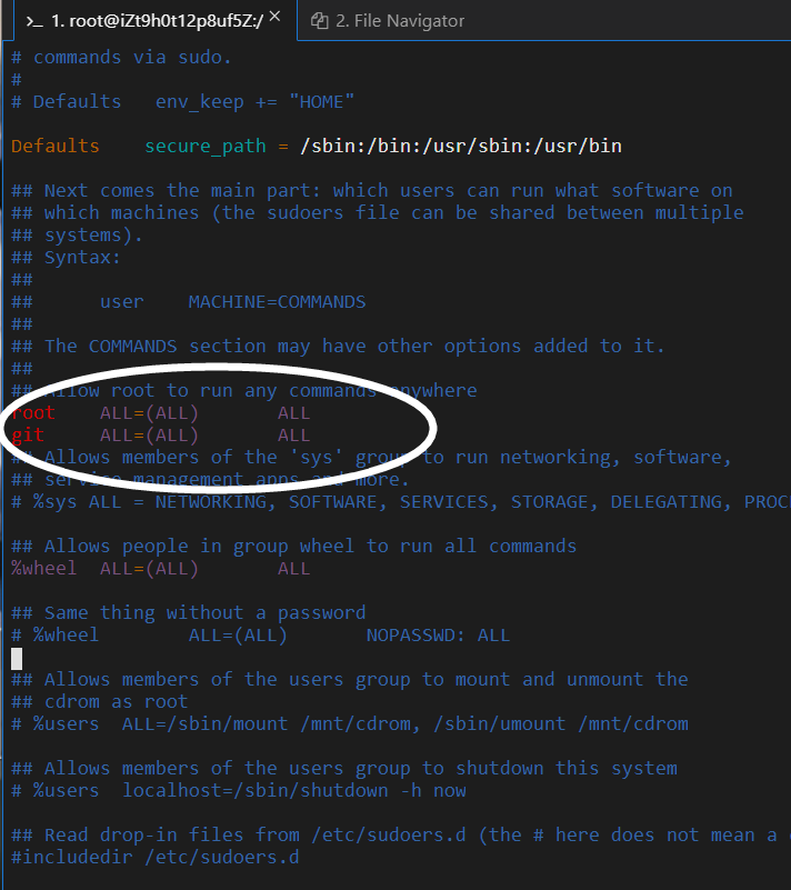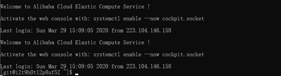 *以上指令都需要在su git 之后执行 如果中途断开重新连接过,需要重新执行 su git指令 进入git账户。